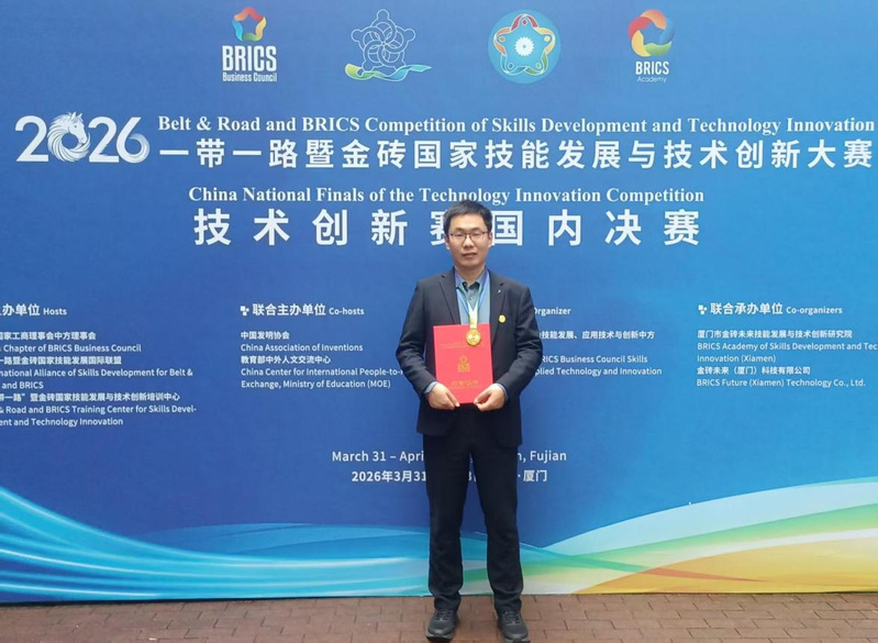 4月3日,2026一带一路暨金砖国家技能发展与技术创新大赛之技术创新赛国内决赛在厦门圆满落幕。经大赛组委会严格评审,我院谭青龙副教授的作品《非离子化弱碱性膜---钒电池储能开拓者》脱颖而出,以优异成绩斩获绿色能源与碳中和主体赛道全国一等奖(金牌),为学校增添一项国家级重磅荣誉!