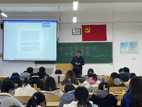 铸魂育人、思政先行。为深入学习贯彻党的十九届六中全会精神,12月20日下午5点,化学化工学院院长何国芳在二号综合楼A2010教室为20级高分子一班学生讲授了主题为“深刻把握六中全会的核心要义和实践要求”的思政课。